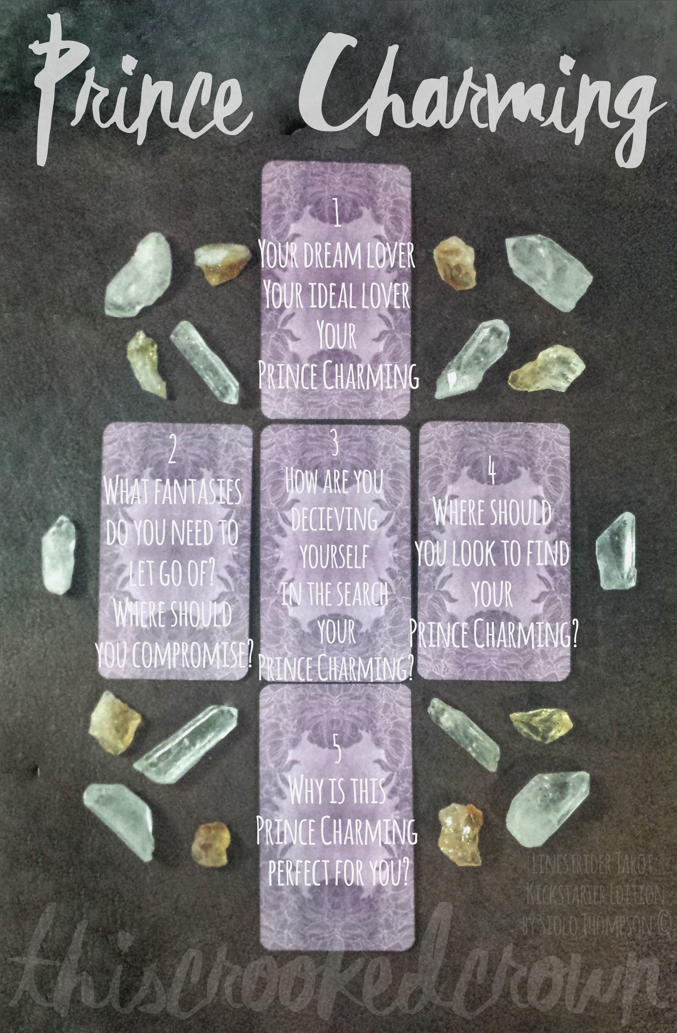 Prince Charming is a spread that looks at you and what you expect from the perfect lover, why they're perfect for you, and what you need to do in order to meet that soul mate in real life.