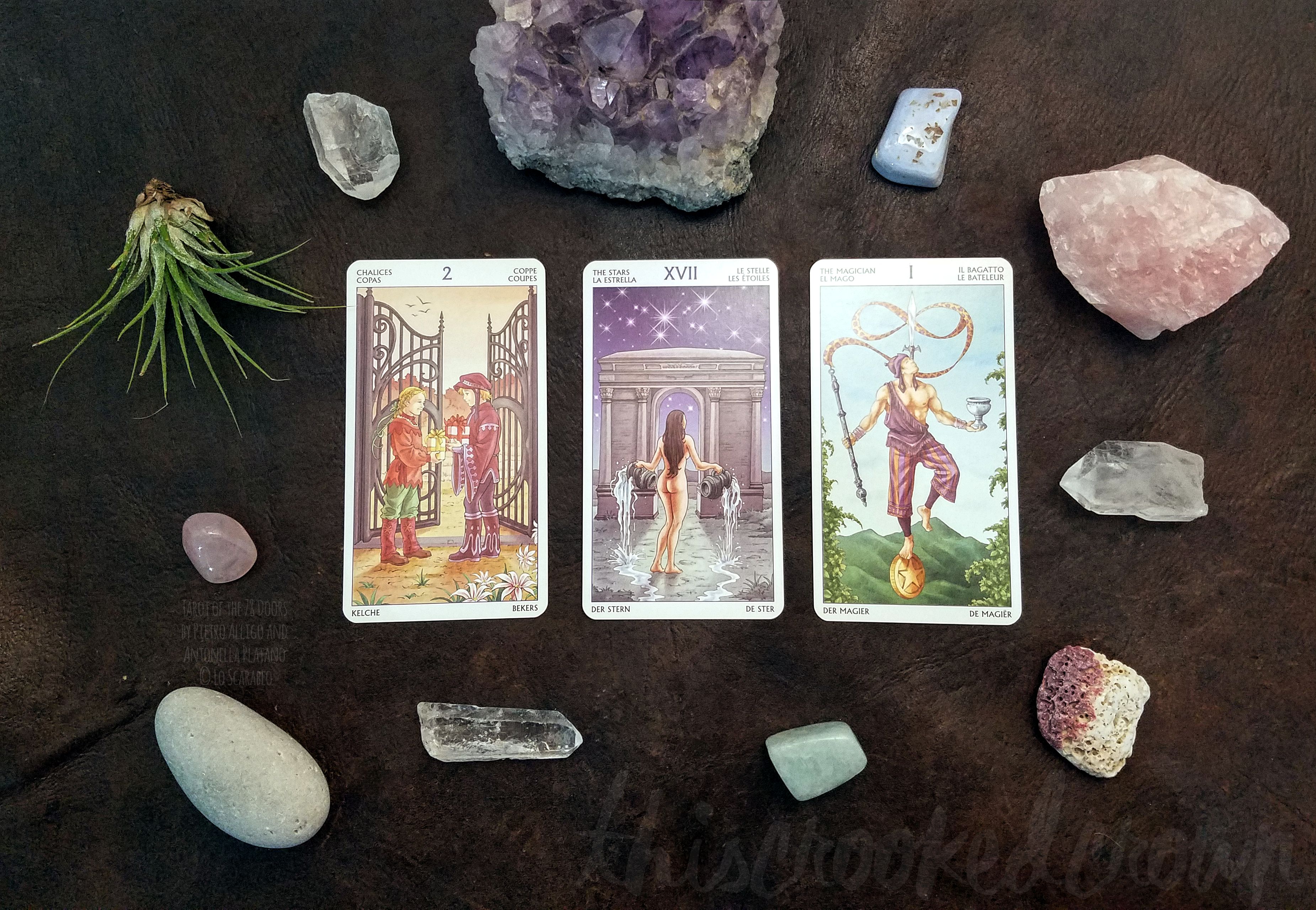 You can read more about the specific tools and decks used in my readings here: http://thiscrookedcrown.com/tarot/.